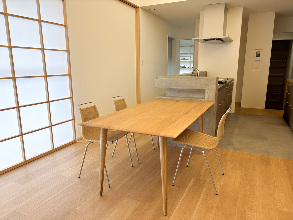 軽やかなデザインと素材感が、障子や無垢材と響き合い
