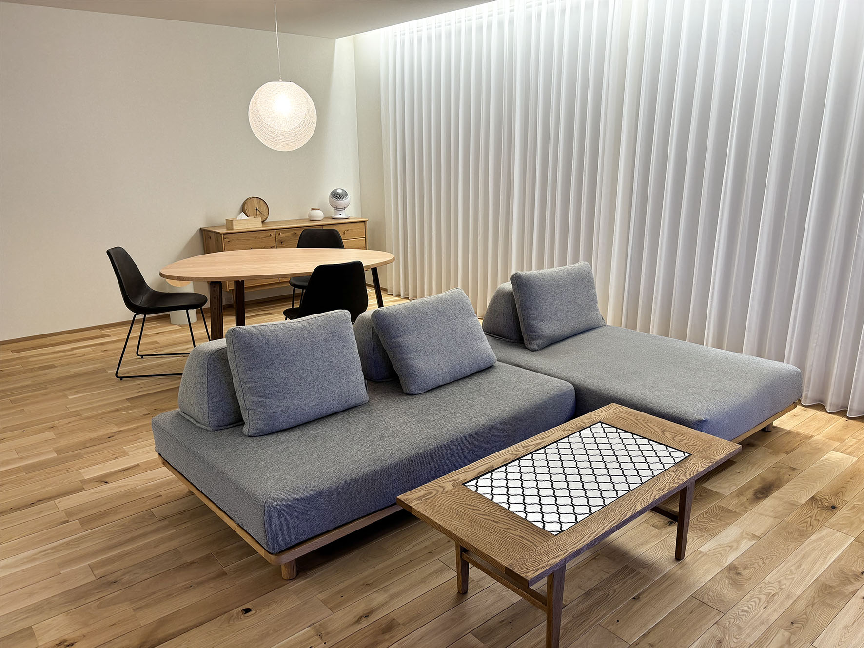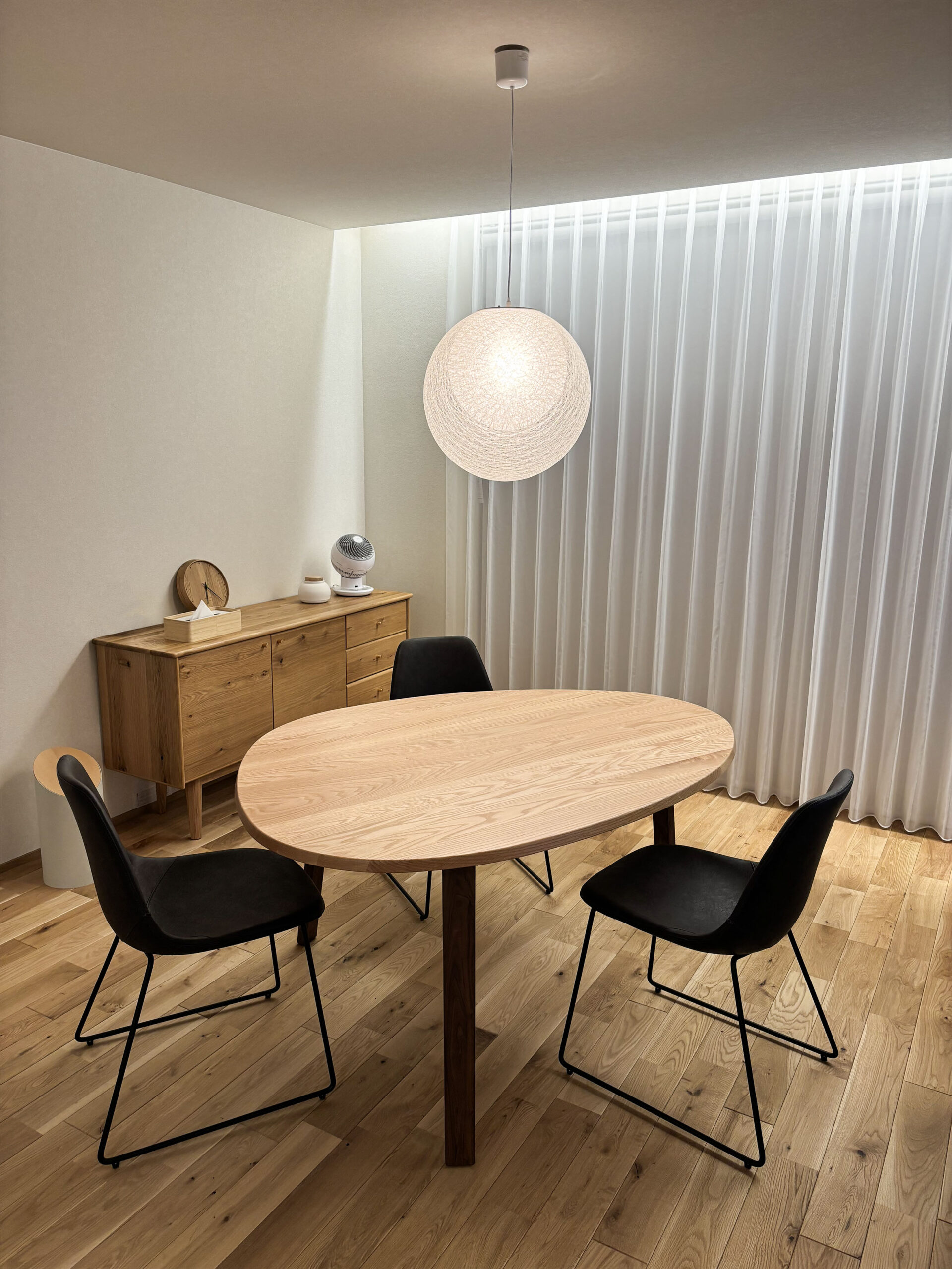 ダイニング、リビングの家具、照明を納品させていただきました。