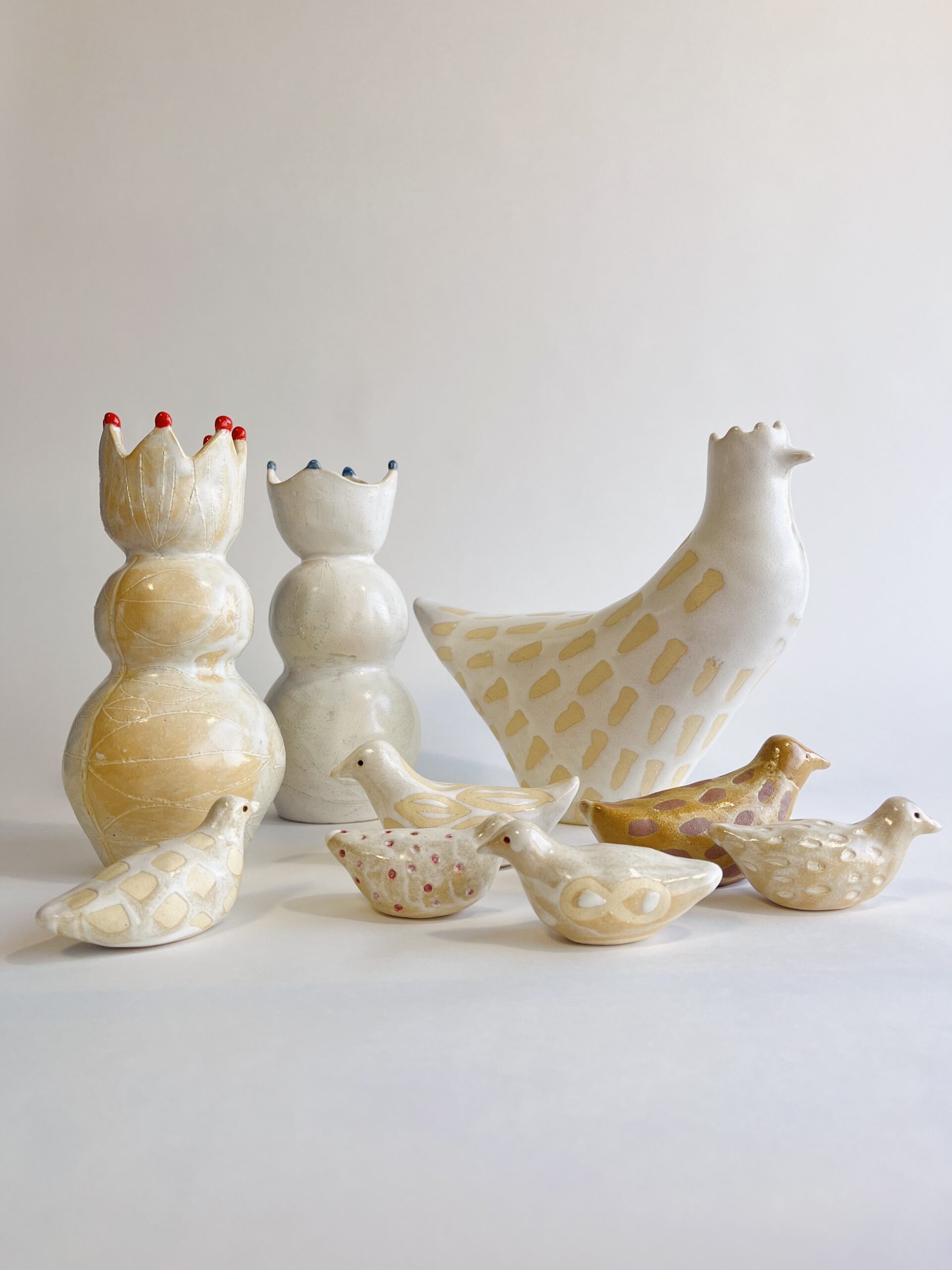 原画や陶器オブジェ、張り子など